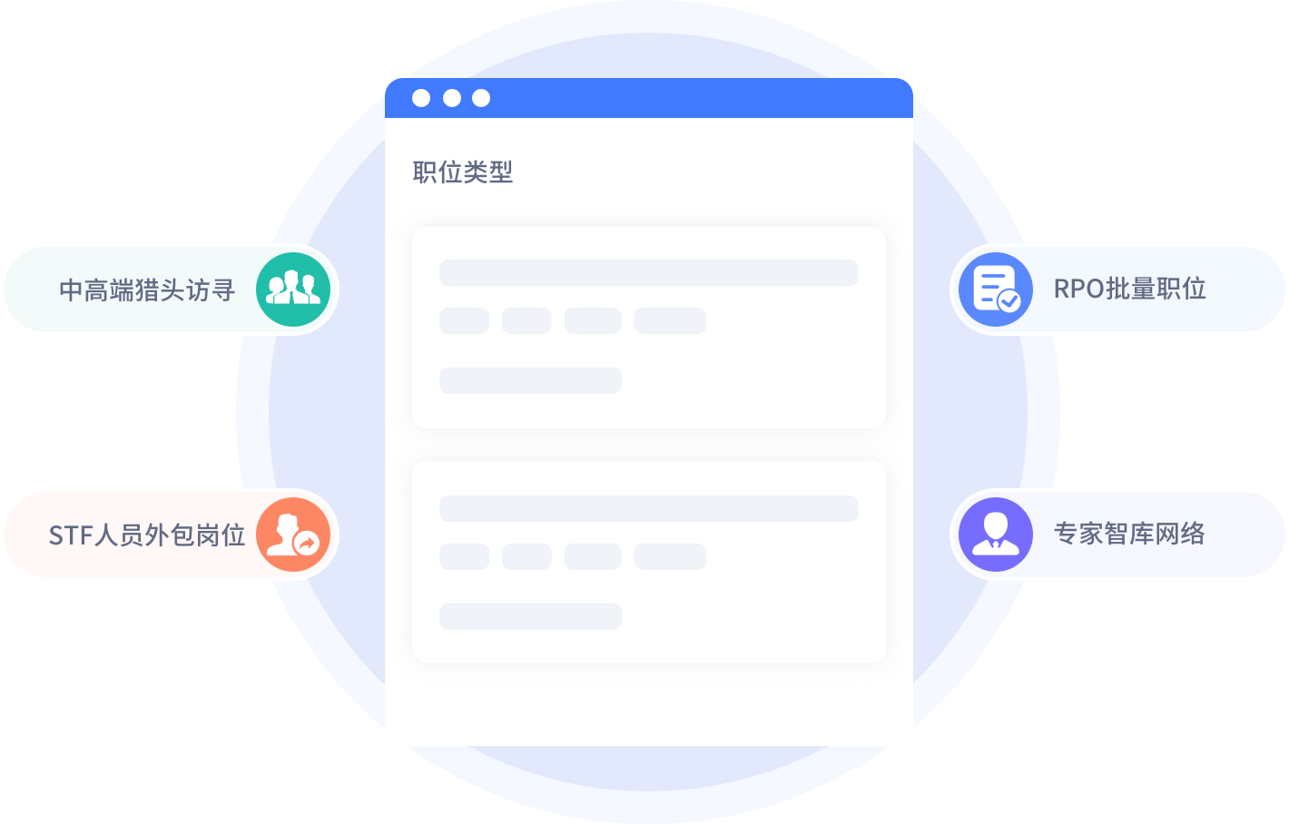 禾蛙平台覆盖的职位类型范围包括中高端猎头访寻、RPO批量职位招聘、STF人员外包岗位、专家智库网络。